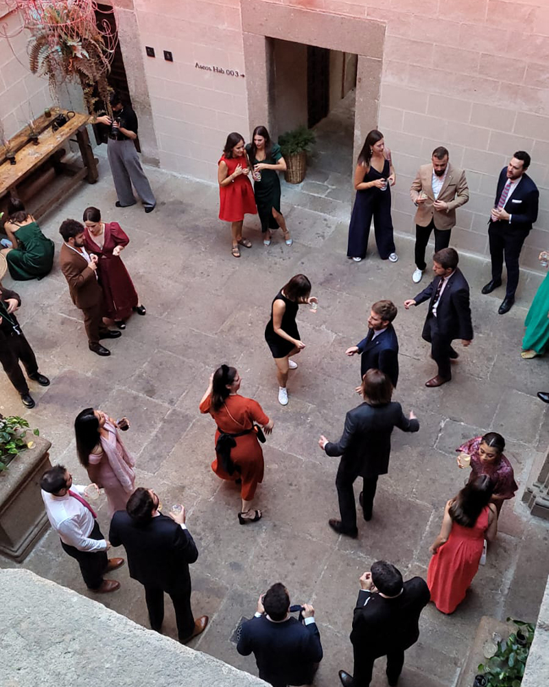 La entrada de Palacio se transforma en el lugar ideal para ofrecer un cálido recibimiento. Adaptamos nuestra recepción para que tus invitados disfruten de un vermut previo al cóctel mientras se instalan y comienza la celebración.